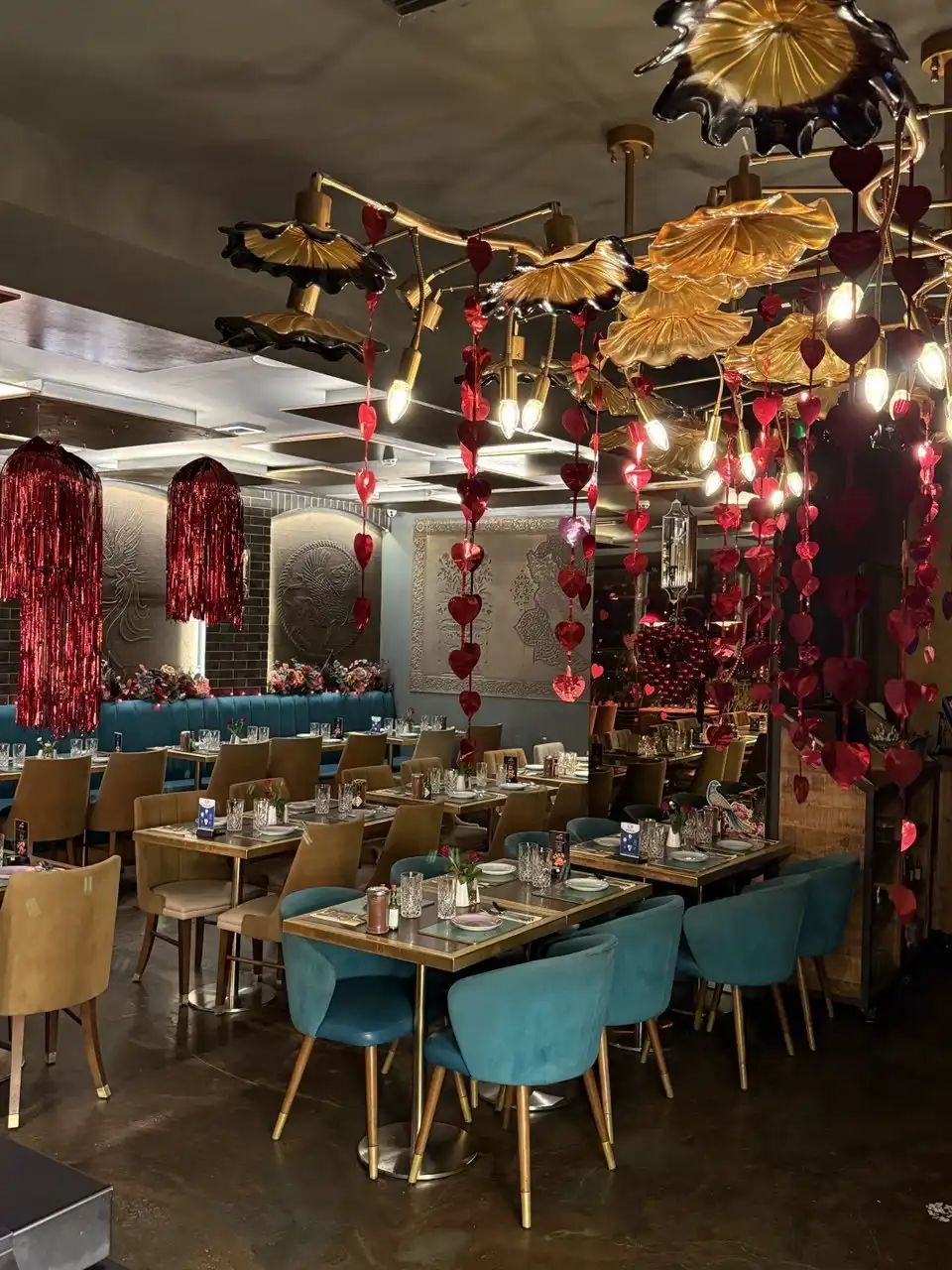 - Floating Heart Canopies: Delicate heart balloons suspended above dining areas with soft lighting